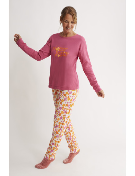 PIJAMA PANTALÓN LARGO CAMISETA MANGA LARGA INTERLOCK PERCHADO INTERIOR