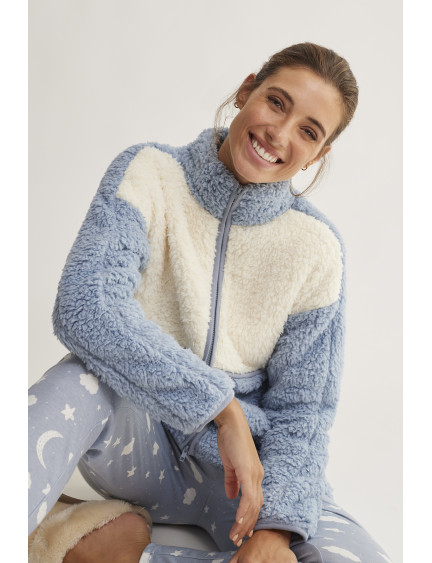 PIJAMA PANTALÓN LARGO CAMISETA MANGA LARGA INTERLOCK PERCHADO INTERIOR. BATA TEJIDO BORREGUITO CON CREMALLERA