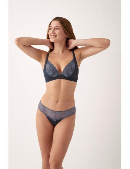 CONJ. SUJETADOR RELLENO TRIANGULAR SIN AROS ENCAJE CON TANGA