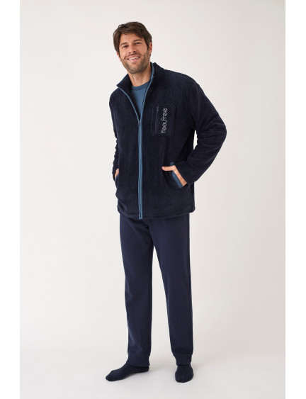 PIJAMA 3 PIEZAS PANTALÓN LARGO CON CAMISETA MANGA LARGA INTERLOCK PERCHADO INTERIOR. CHAQUETA TEJIDO PELUDO CON CREMALLERA