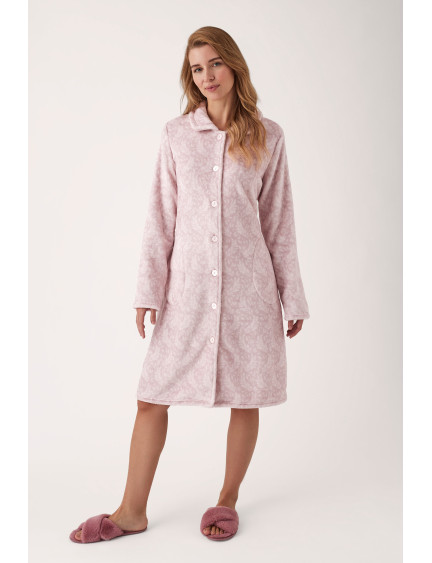 BATA ABOTONADA LARGO MIDI TEJIDO PELUDO ESTAMPADO BICOLOR
