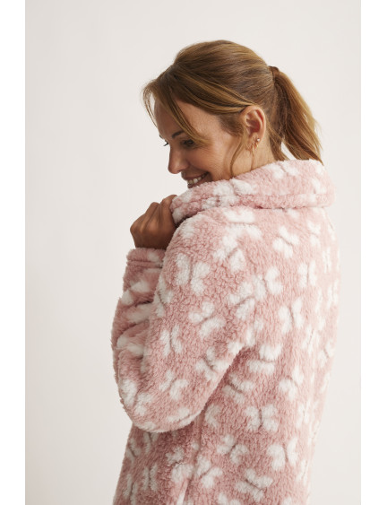 BATA CON CREMALLERA DE DOBLE APERTURA TEJIDO BORREGUITO ESTAMPADO MARIPOSAS